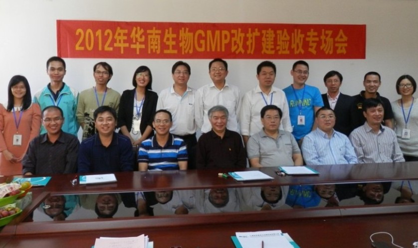 根據《獸藥生產質量管理規范》的規定,依照《獸藥生產質量管理規范檢查驗收辦法》,農業部獸藥GMP工作委員會辦公室指派吳福林、張廣川、魏財文、楊承槐4名檢查員擔任我司獸藥GMP驗收工作;廣東省畜牧獸醫局選派羅建民、李躍龍兩名同志擔任觀察員,共赴廣州市華南農大生物藥品有限公司,對公司改擴建的胚毒滅活疫苗生產線、細胞毒滅活疫苗生產線進行為期2天的獸藥GMP現場檢查驗收。