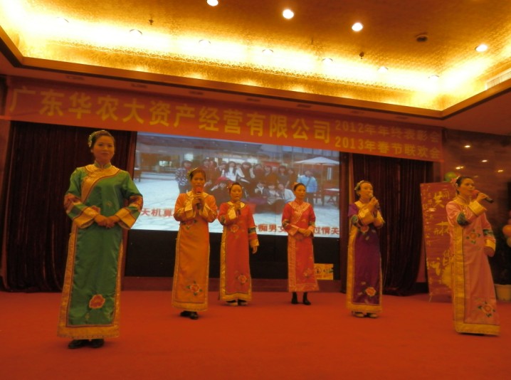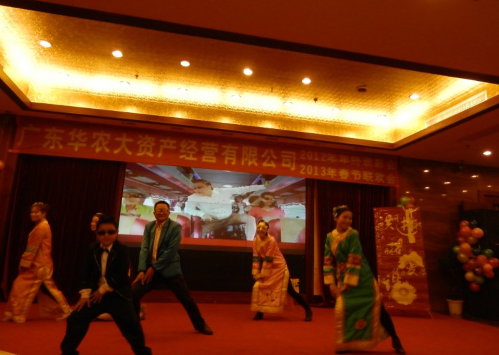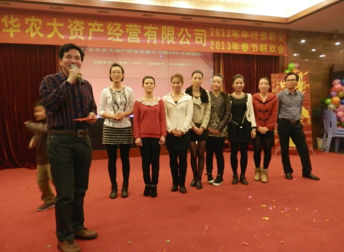 2012年1月25日下午,廣東華農(nóng)大資產(chǎn)經(jīng)營(yíng)有限公司聯(lián)歡大會(huì)在廣州源華酒店隆重舉行,我司作為屬下企業(yè)參與了本次會(huì)議。大會(huì)共分為三個(gè)環(huán)節(jié),第一個(gè)環(huán)節(jié):年度優(yōu)秀集體與個(gè)人的表彰大會(huì);第二個(gè)環(huán)節(jié):各企業(yè)節(jié)目表演;第三個(gè)環(huán)節(jié):晚宴與抽獎(jiǎng)。