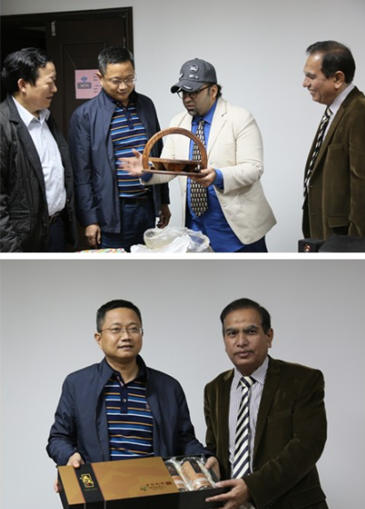 華南生物總經理梁昭平先生對遠道而來的Sanna Laboratories公司總經理Dr. Muhammad Nadeem Sarwar表示由衷歡迎。同時,兩位總經理一見如故,都分別為對方準備了小禮物。