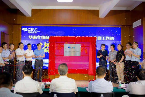 在全體來賓的掌聲中,各領導嘉賓們為“院士專家企業工作站”、“華南生物藥品創新研究院”隆重揭牌,伴隨著禮炮聲響,華南生物藥品創新研究院院士專家企業工作站正式起航!