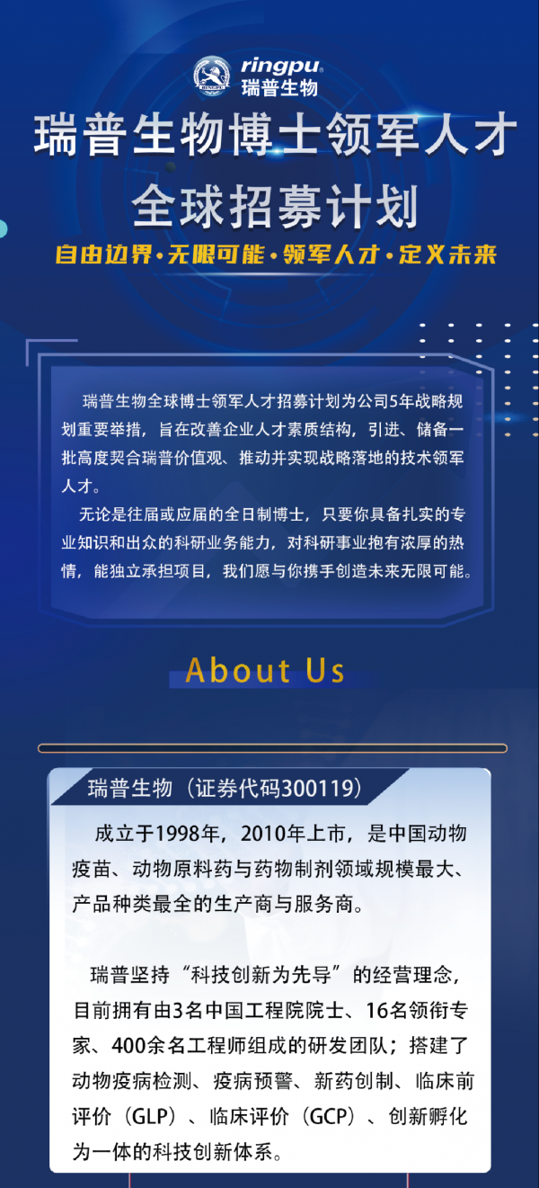 官宣第二彈 | 瑞普生物博士領(lǐng)軍人才全球招募計(jì)劃