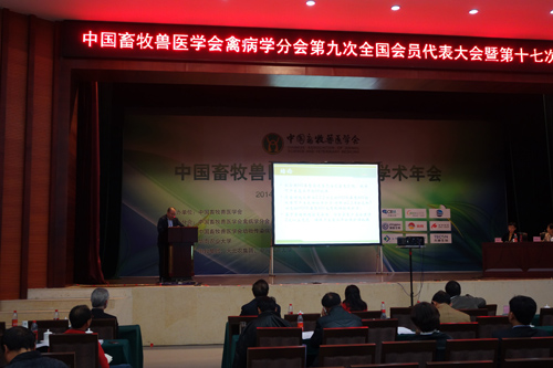 我公司技術(shù)服務總監(jiān)薛素強在大會上了作了《禽流感滅活疫苗(H5N2亞型,D7株)的研究與應用》的報告。