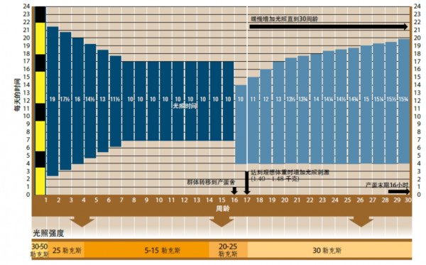 每個蛋雞育種公司一般都會提供相應(yīng)品種的光照管理方案,蛋雞養(yǎng)殖企業(yè)及個體在遵循相應(yīng)管理方案的同時,也可根據(jù)實際情況做出適當(dāng)調(diào)整。