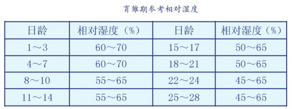 (1)育雛期間,應該使雞群處于適當的濕度條件下,這樣既能保證雛雞的舒適性,也能降低雞舍中的粉塵含量。