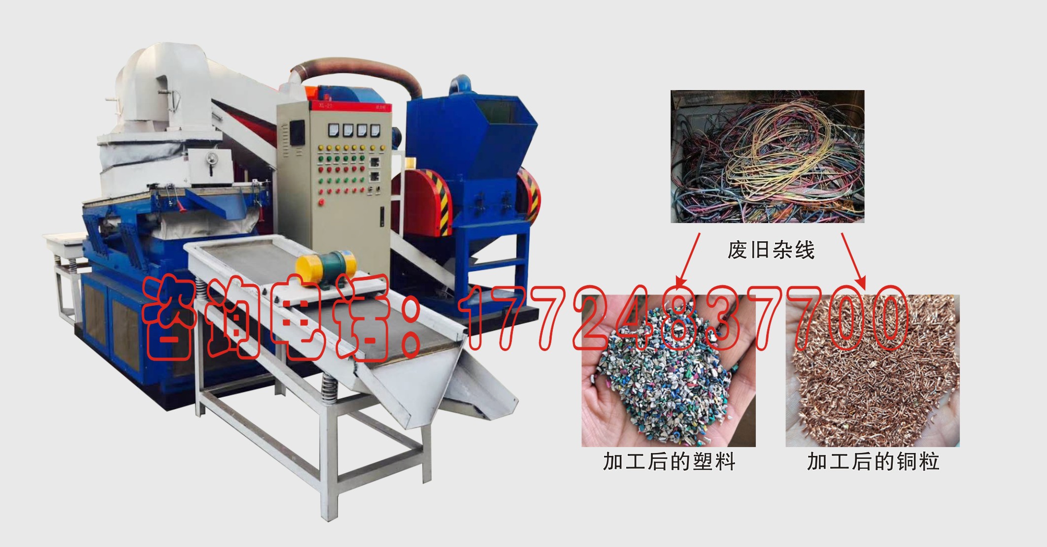 電路線處理設備也叫做銅米機,是一款用于粉碎廢舊電路線并將其中的銅和塑料進行分選的環保型機械設備。久旺機械生產的電路線處理設備價格合理、采用平臺式組合設計,結構緊湊,產量高,銅塑分選率高,是加工處理廢舊電路線的優質設備。